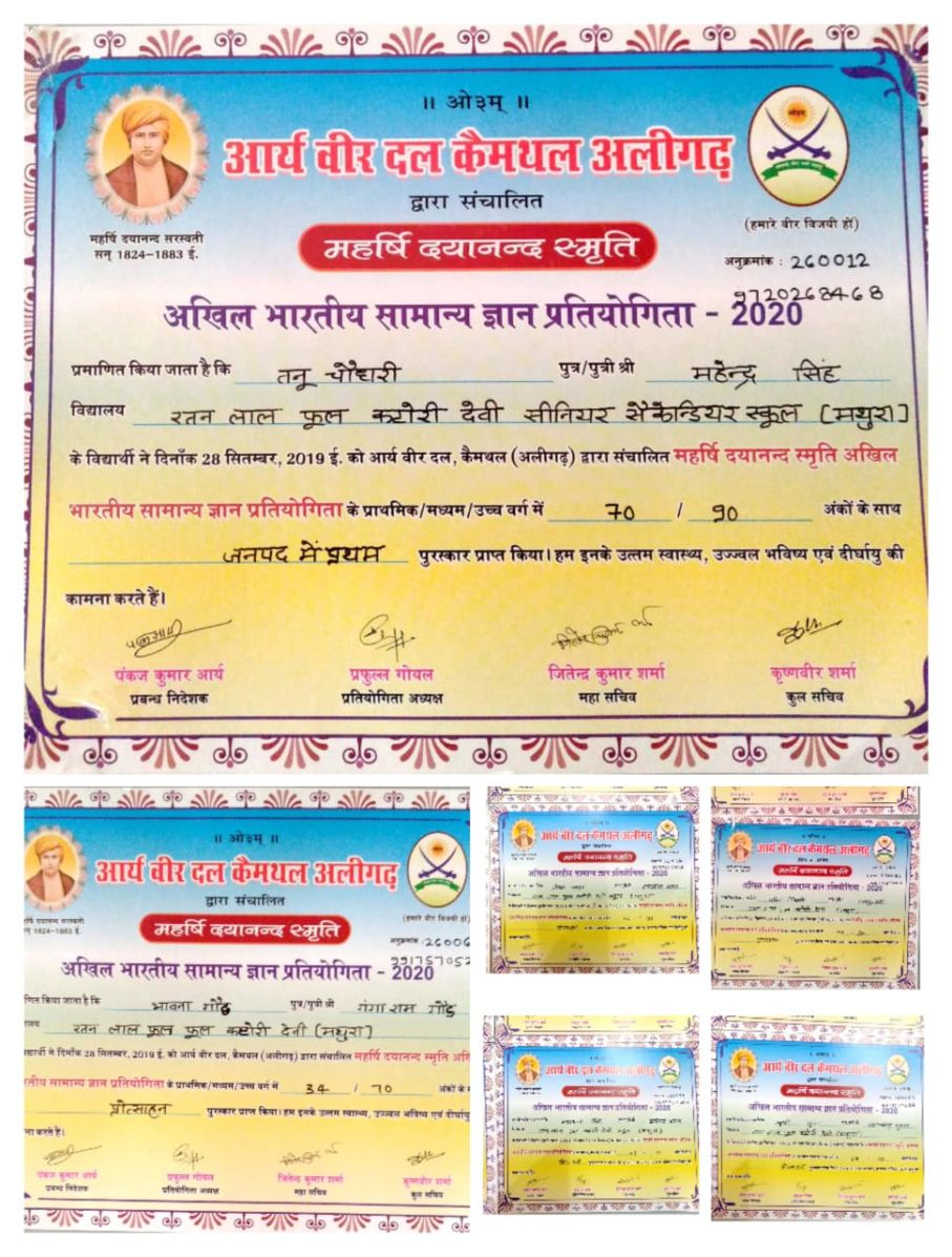 Description : (महर्षि दयानन्द स्मृति) में विद्यालय की बालिकाओं ने जनपद में प्रथम स्थान प्राप्त किया।